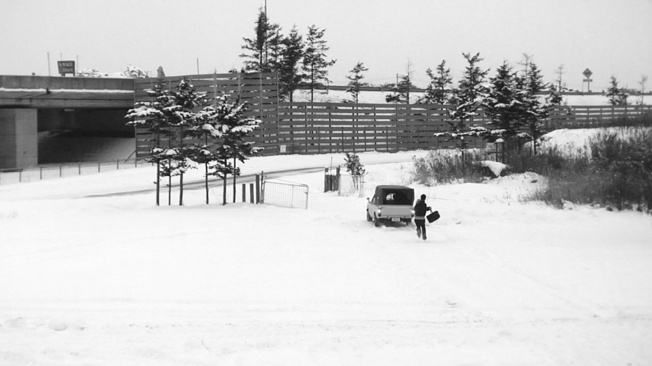 하지만 이 기대는 한순간에 무너진다. 트럭을 도난당하고, 지나간 자리에는 금세 눈이 쌓인다. 처음부터 없었던 것처럼 완전히 사라진 것이다. 트럭이 사라지자 이타미는 더 이상 움직이지 못하는 사람이 된다. 트럭을 찾기 위해 스크린의 왼쪽 끝까지 달려가는 테츠오와 바닥에 주저앉은 이타미의 모습이 선명하게 대비된다.