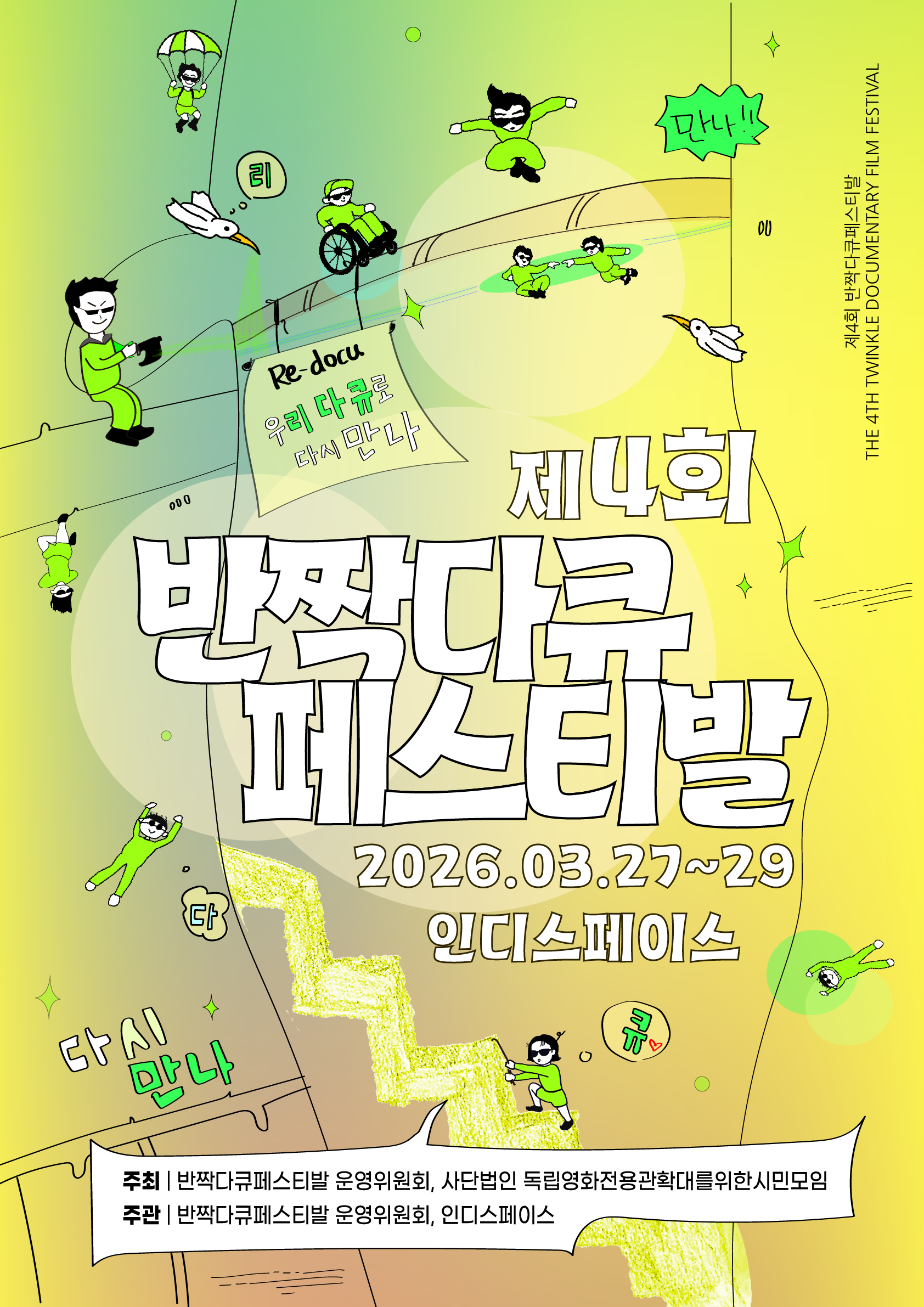 ์ฒซ๋ฐ์ ๋ด๋๋ ๋ฐ์ง๋คํํ์คํฐ๋ฐ์ โ๋ฐ์งโ ๋ฑ์ฅํ๋ค๊ฐ ์ฌ๋ผ์ง ๊ฒ ๊ฐ์์ง๋ง, ๋งค ํ์ฐจ ์ฐฝ์์์ ๊ด๊ฐ์ด ์๋ก์ ์กด์ฌ๋ฅผ ํ์ธํ๋ฉฐ ์๋ฆฌ๋ฅผ ์ง์ผ์์ต๋๋ค. ๊ธฐ๋ก์ ๋ฉ์ถ์ง ์๋ ์ด๋ค๊ณผ ๊ทธ ์๊ฐ์ ํจ๊ป ๋ฐ๋ผ๋ณด๋ ๊ด๊ฐ์ด ์๊ธฐ์ ๋ฐ์ง๋คํํ์คํฐ๋ฐ์ ๋ค์๊ธ ๊ฐ์ ์๋ฆฌ์ ์ญ๋๋ค. ์ 4ํ ๋ฐ์ง๋คํํ์คํฐ๋ฐ์ RE-DOCU: ์ฐ๋ฆฌ ๋คํ๋ก ๋ค์ ๋ง๋ ๋ฅผ ์ฌ๋ก๊ฑด์ผ๋ก ๋ด๊ฑธ๊ณ ๊ด๊ฐ ์ฌ๋ฌ๋ถ์ ๋ง๋ฉ๋๋ค. โ๋ค์โ ๋คํ๋ผ๋ ๊ฒ์ ๊ณผ๊ฑฐ๋ฅผ ๋ฐ๋ณตํ๊ฒ ๋ค๋ ๋ป์ด ์๋๋๋ค. ์ง๋์ณ ์จ ํ์ฅ์ โ๋ค์โ ๋ฐ๋ผ๋ณด๊ณ , ๋น์ฐํ๋ค๊ณ ์ฌ๊ฒจ์ก๋ ํ์ฌ๋ฅผ โ๋ค์โ ์ง๋ฌธํ๋ฉฐ, ํฉ์ด์ ธ ์๋ ๋ชฉ์๋ฆฌ๋ค์ โ๋ค์โ ์ฐ๊ฒฐํ๋ ์ผ์