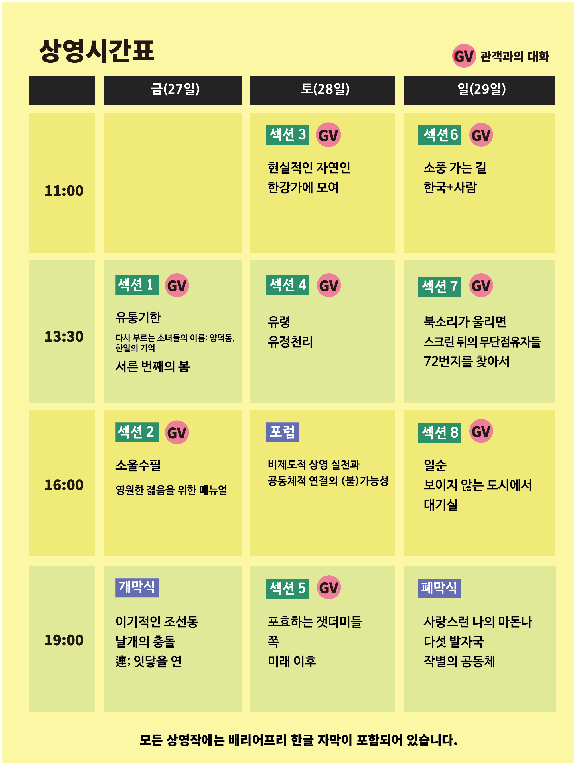 6๏ฝ์์ 3. 29(์ผ) 11:00 (์์ ํ GV) |
